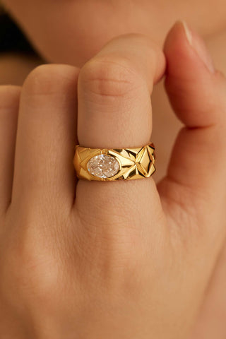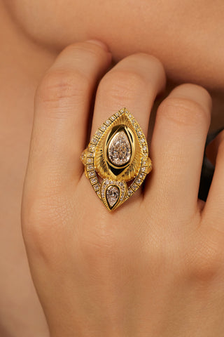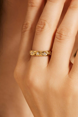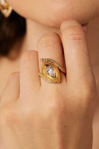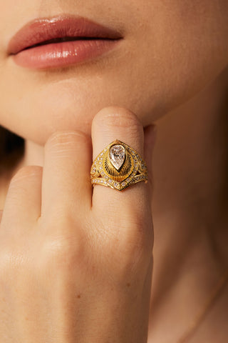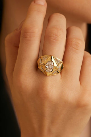TRIANGLE-SHAPED VINTAGE BEADS GEOMETRY DREAM CATCHER LAB-GROWN DIAMOND RING IN 9K YELLOW GOLD