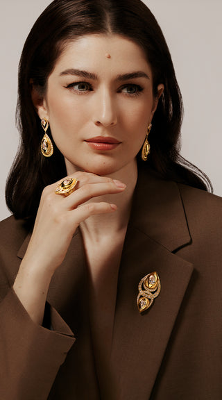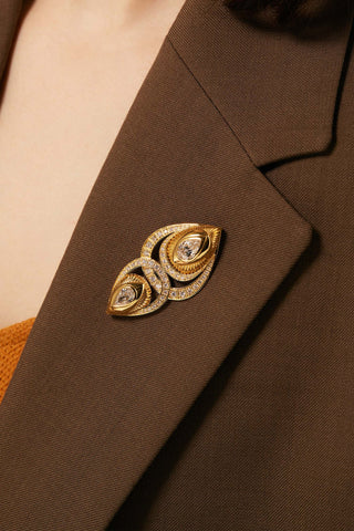 2.0CT & 1.0CT PEAR-CUT LAB-GROWN DIAMOND GLORY BROOCH IN 14K YELLOW GOLD