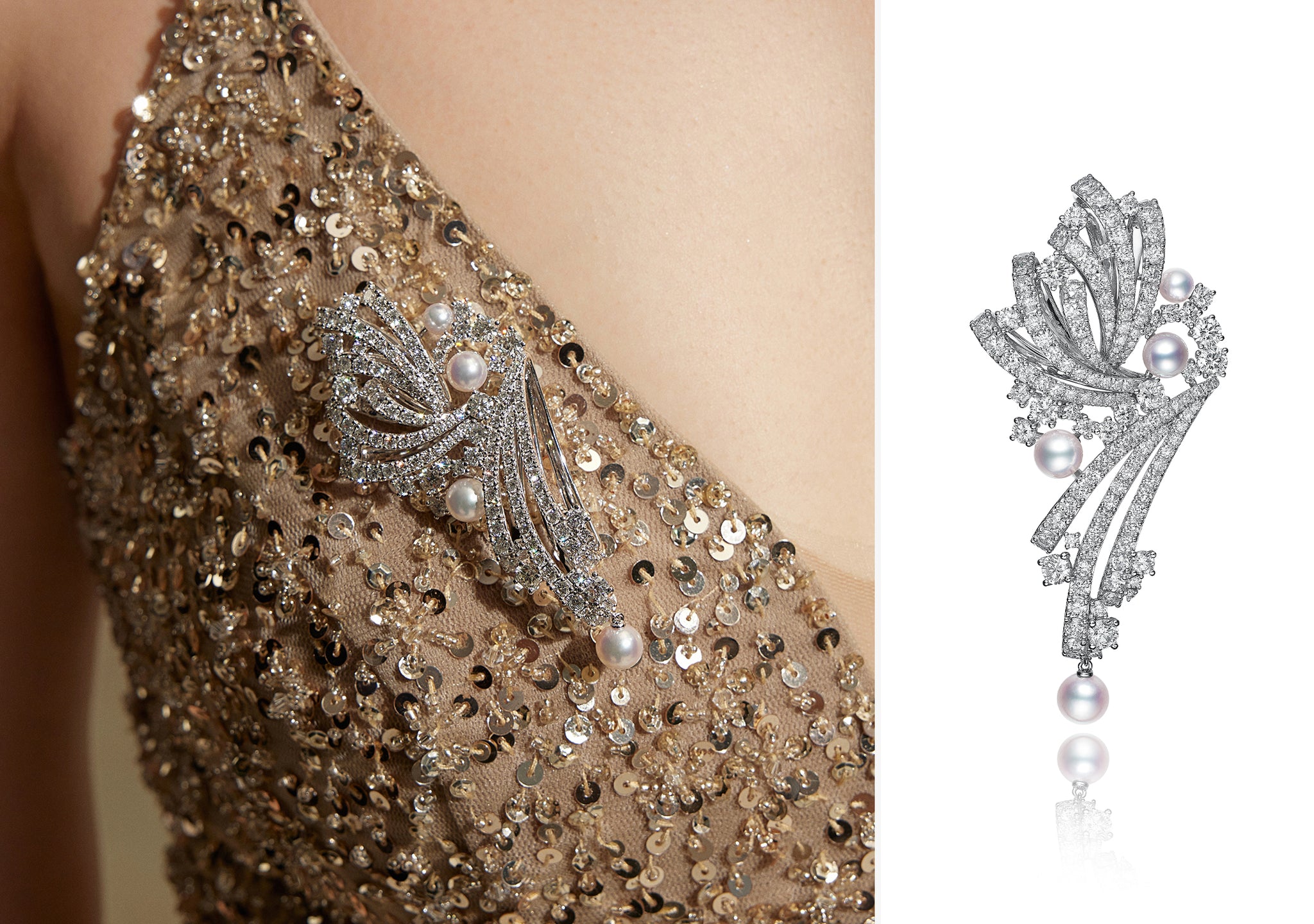 Throughout the minimalist lines, the shimmering lab-grown diamonds seem to be playing a never-ending game of chase with elegant dance steps, as if they are escaping the cliché of beauty and searching for their true selves. The lustrous Akoya pearls stand out against the glittering background, creating a luxurious and refined atmosphere for the brooch. In this moment, all the sparkle is for you; be as radiant as you can be regardless of external constraints.