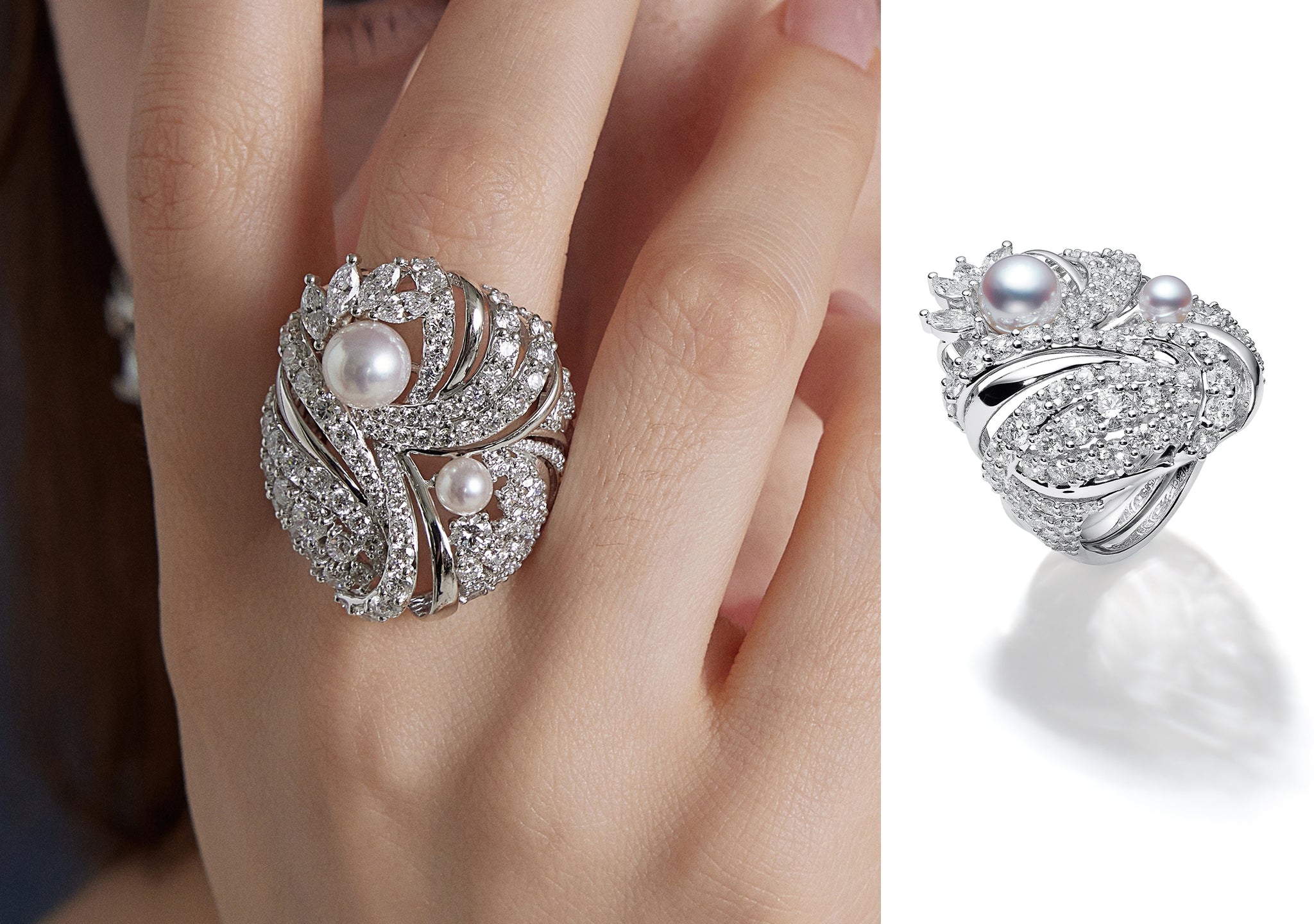 The curved lines intertwine and spiral upwards, converging into a force that is about to shatter all societal constraints. The brilliant Akoya pearls are surrounded by sparkling lab-grown diamonds, as if they are dancing together with exquisite and gentleness. With your fingertips as the stage, it is time to dance for yourself in a free, dynamic and uninhibited way with this designed jewelry.