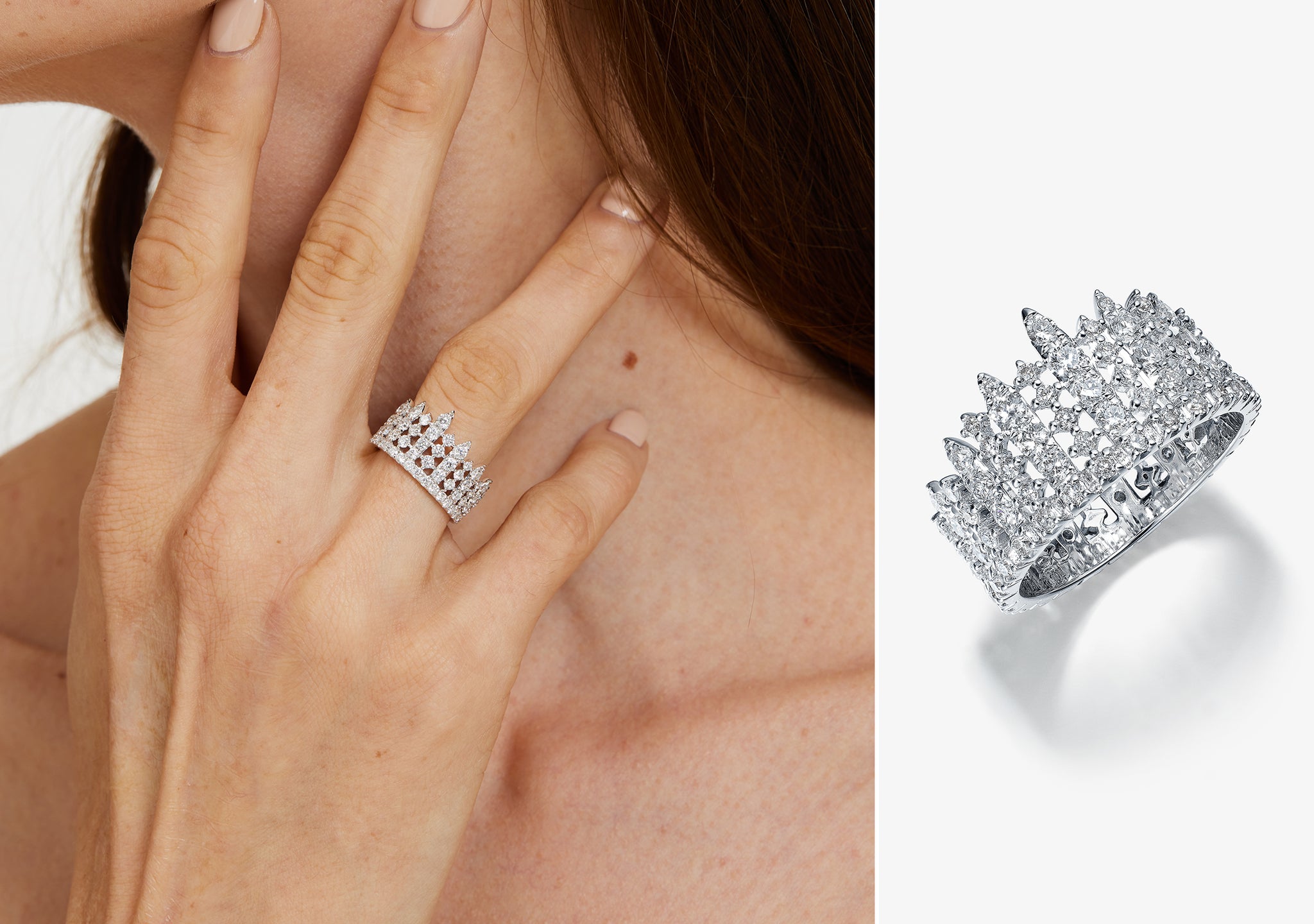 Each of these five designer diamond rings is inspired by a royal tiara and makes a powerful statement about feminine power. Be your own queen and grasp your fate within your own hands. This collection makes exceptional gifts and can also be worn daily with any outfit. Celebrate the strength of modern women with this royalty inspired jewelry collection from Zaiyou.
