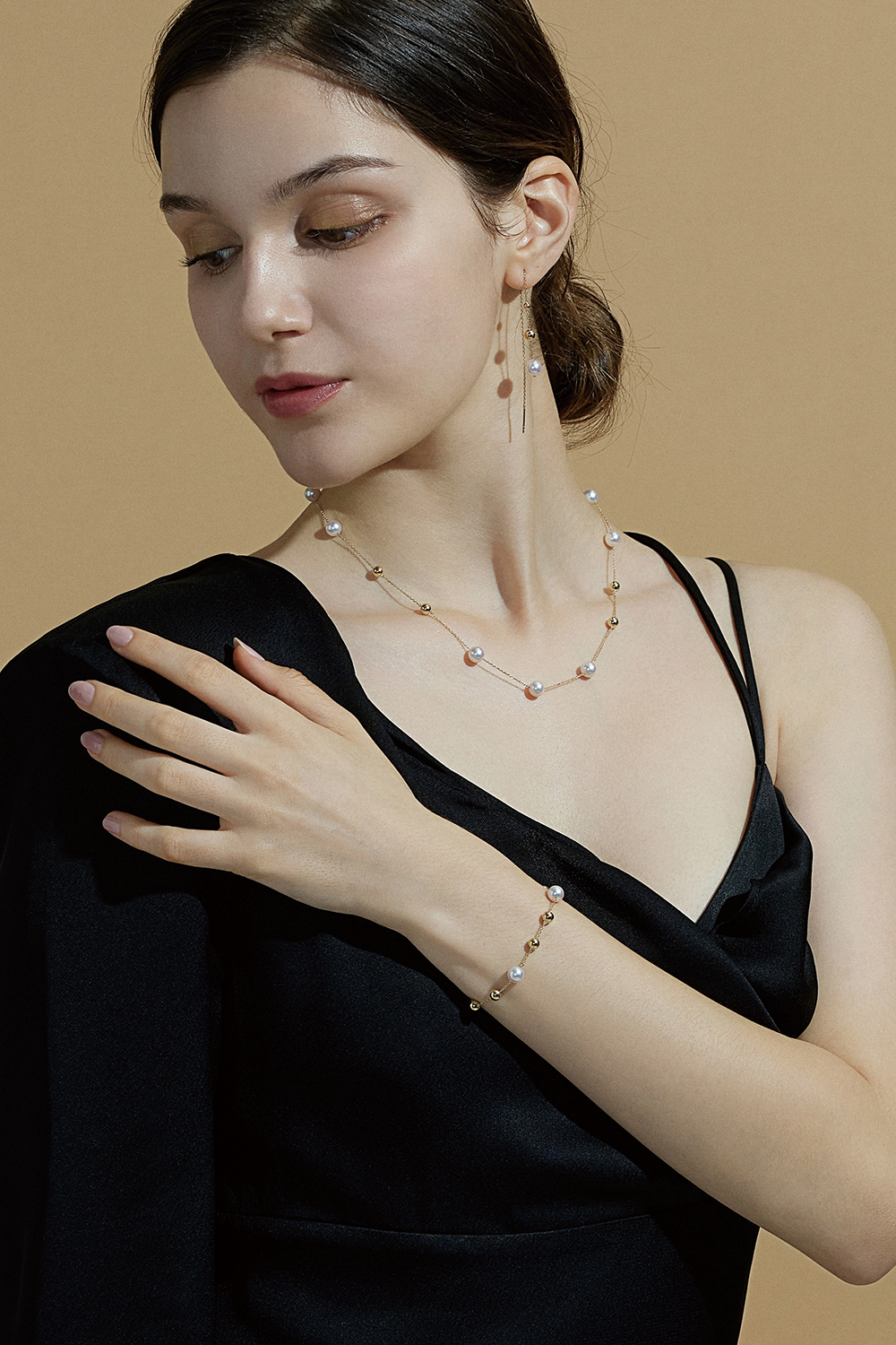 Pearls are elegant yet versatile gemstones that will suit all kinds of looks, from vintage to modern. The pearl jewelry in this collection is especially great for daily wear in fall and winter. Pair them with cozy sweaters or heavy coats and add a subtle sheen to your soft, fuzzy look. The necklace and bracelet chains have a two-hole sliding bead for easy length adjustments. Adjust the length for different styling needs and explore the versatility of these pearl jewelry.