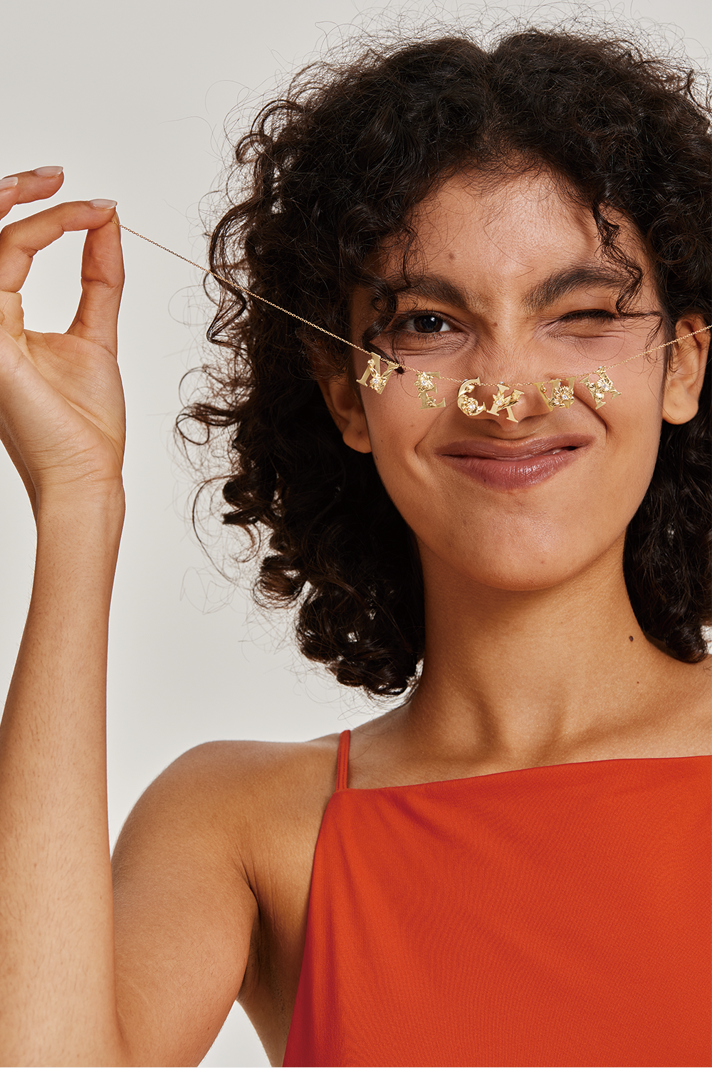 The pendants are made with 9-karat gold with a lab-grown diamond on top. The letters are treated with a special process called Abrasive Blasting and thus have a soft matte finish to them. The flowers intertwining the letters, on the other hand, have a high shine finish to emphasize their tenderness and delicacy. Two different textures weave together an exquisite pendant and a flower fable for a little bit of romance in daily life.