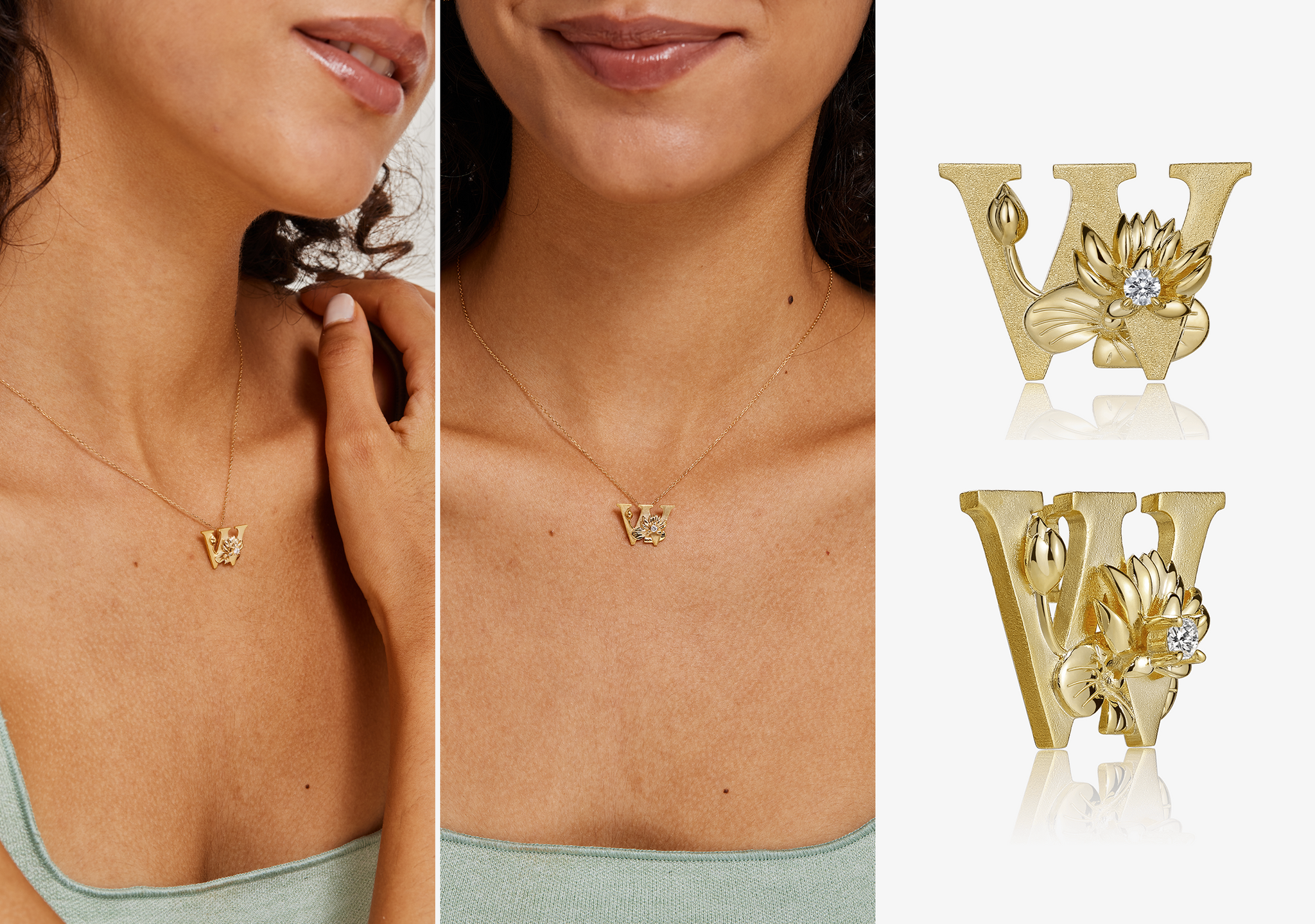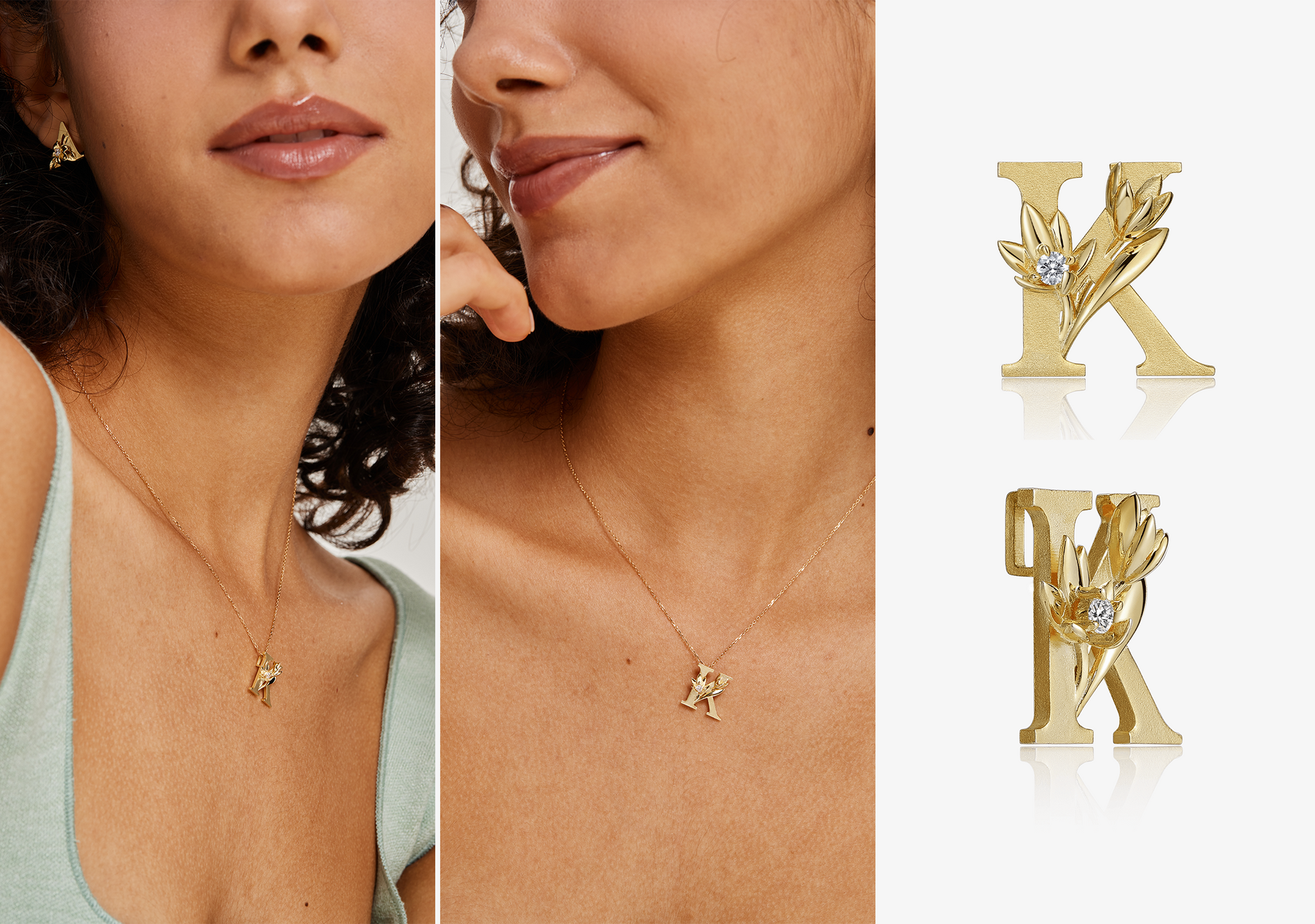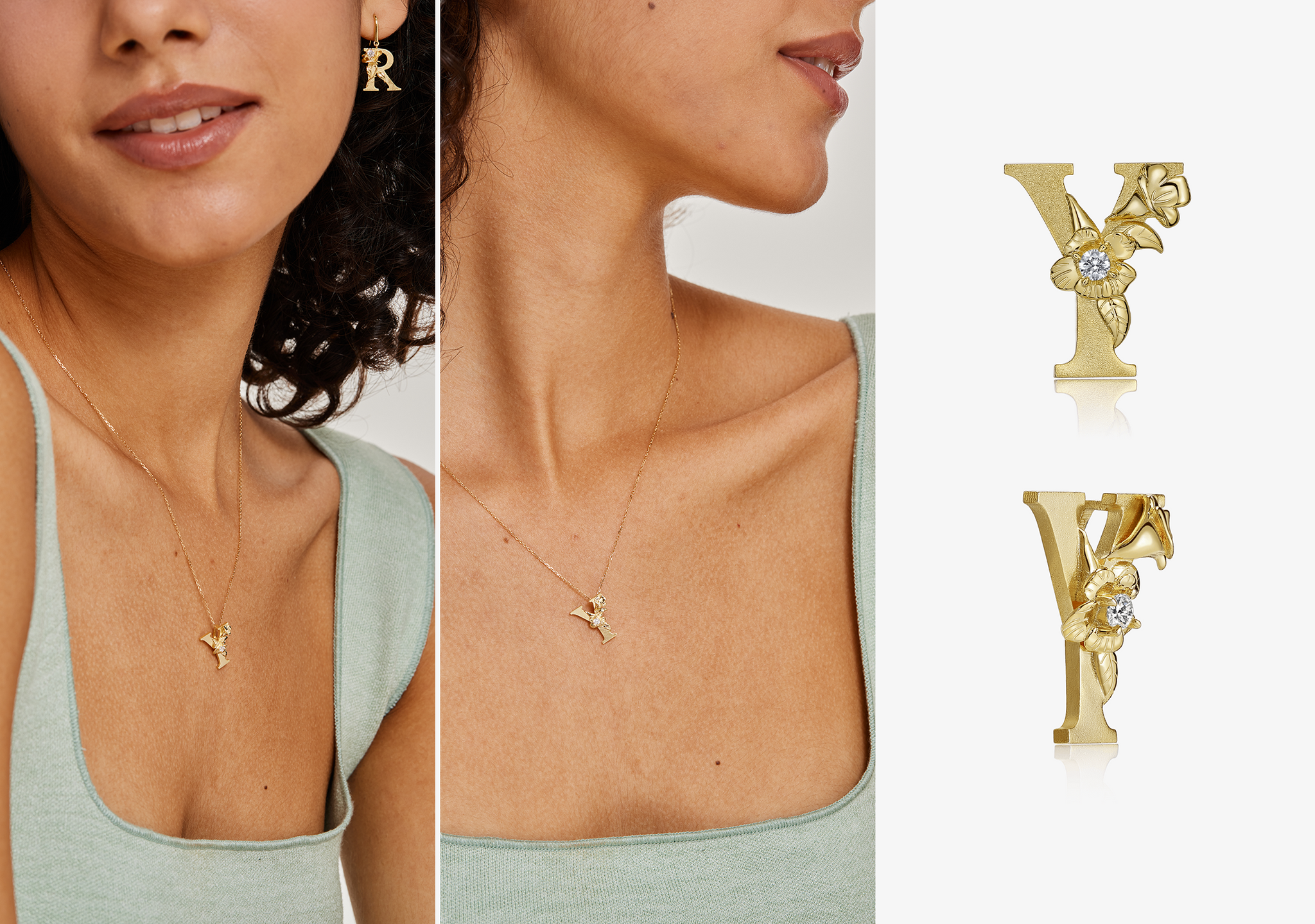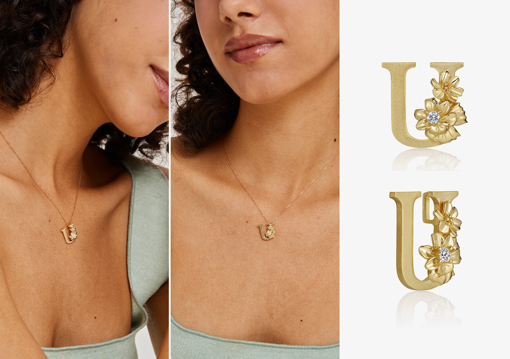The Flower Fables collection by Zaiyou Jewelry draws inspiration from the first letter of 26 species of flowers, ranging from A to Z. Each initial letter pendant holds a special significance and blessing from the corresponding flower. Isn’t it fascinating to discover that your name's initial is associated with a particular flower?