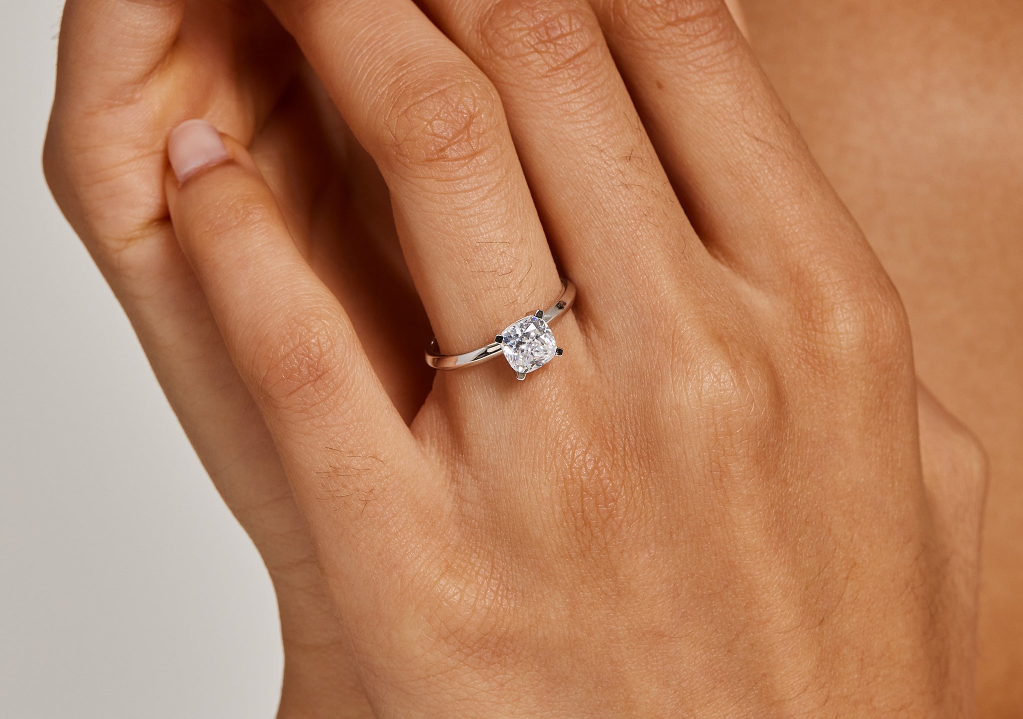 The cushion-cut diamond, often referred to as the 'pillow cut,' features larger facets and rounded corners that looks like a cushion. This vintage-style cut shares similarities with the round cut, showcasing 58 facets and a rectangular shape. The cushion diamond exhibits excellent light reflection and scintillation, making it well-suited for solitaire, shoulder, and cluster-style rings.
