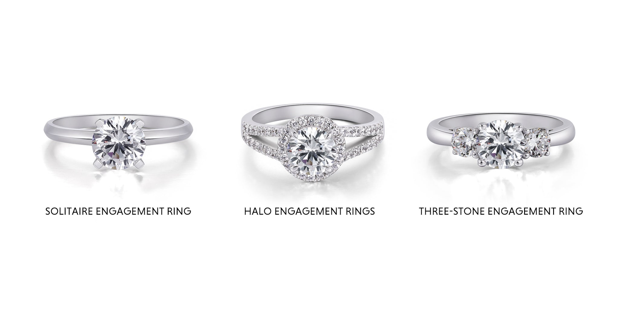 - SOLITAIRE – the most classic and simplest setting where asingle diamond is set on a simple band, emphasizing the beauty and elegance of the individual stone.