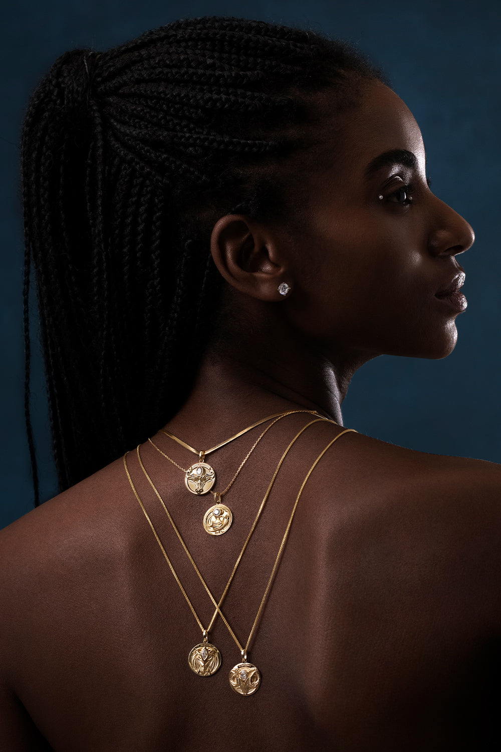 The Zodiac collection, inspired by the wonders of the cosmic firmament, combines exquisite jewellery craftsmanship with the mystical power of the constellations in a single pendant. Twelve 9K gold pendants are set with lab-grown diamonds, each with a round, horse-eye, oval, and pear-shaped centre stone, representing a different coalescence of the four powers of the zodiac (wind, fire, earth, and water). This collection focuses on unisex Jewelry with matching earrings or necklaces to suit all demographics, regardless of gender and sexuality.