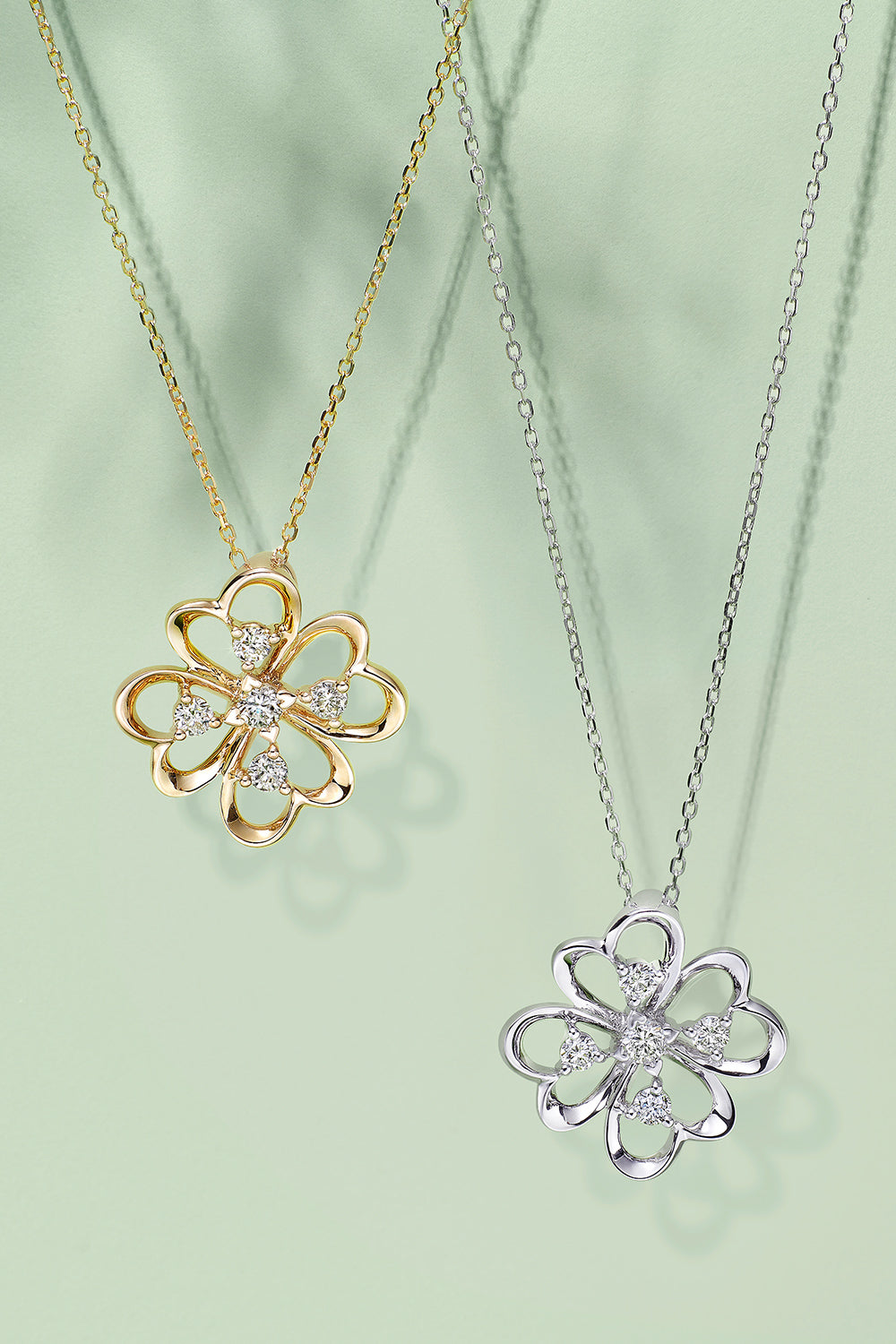 This pendant features a four-leaf clover design, with each petal made of 18k gold representing a beating heart. Five sparkling lab-grown diamonds are adorned within, and the central main lab-grown diamond is securely held by four heart-shaped prongs. They are arranged in a layered and flowing pattern, creating a sense of elegance and continuity. If you want to choose a gift for her on Valentine's Day that is not redundant and has a meaning, perhaps bringing your other half a piece of good luck is the best blessing of all. Embrace each other hand in hand, meeting you is my greatest luck and the best gift!