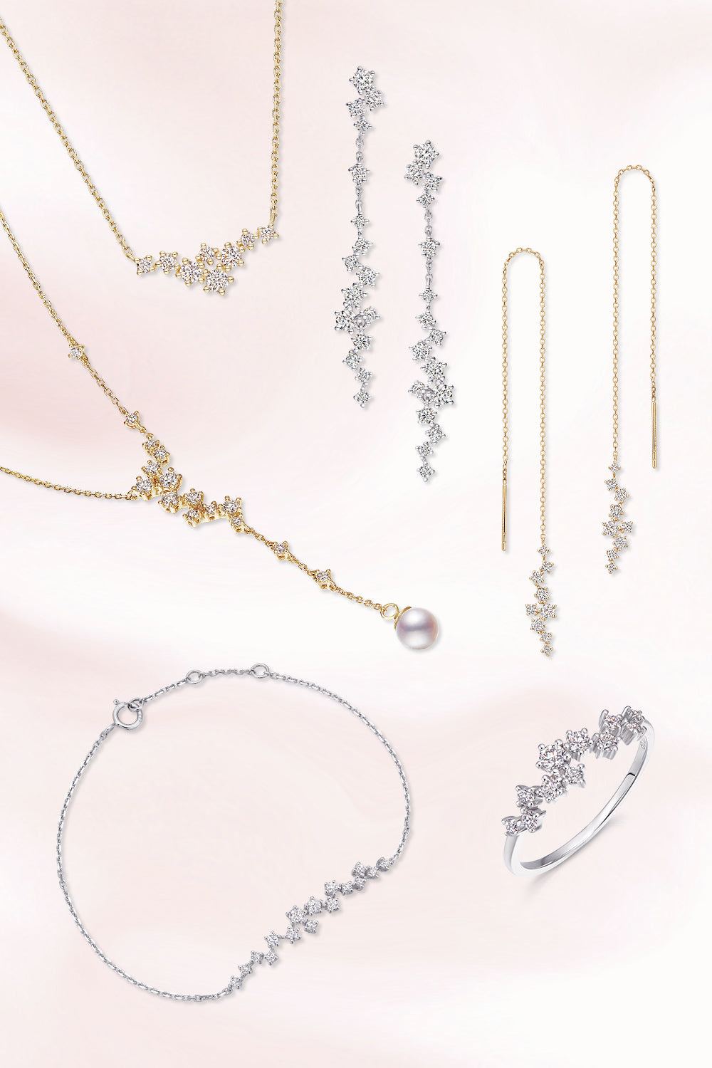 The Sparkling collection is inspired by stars, a simple rounded silhouette surrounded by small lab-grown diamonds, symbolising a love as bright as the Milky Way. The classic pairing for this collection is a pendant and earrings. As Valentine's Day approaches, let this best jewelry gift from the galaxy add a touch of romance and mystery to your love. May every star bear witness to your love, just like this Star River Necklace and Earrings, twinkling eternally and never fading.