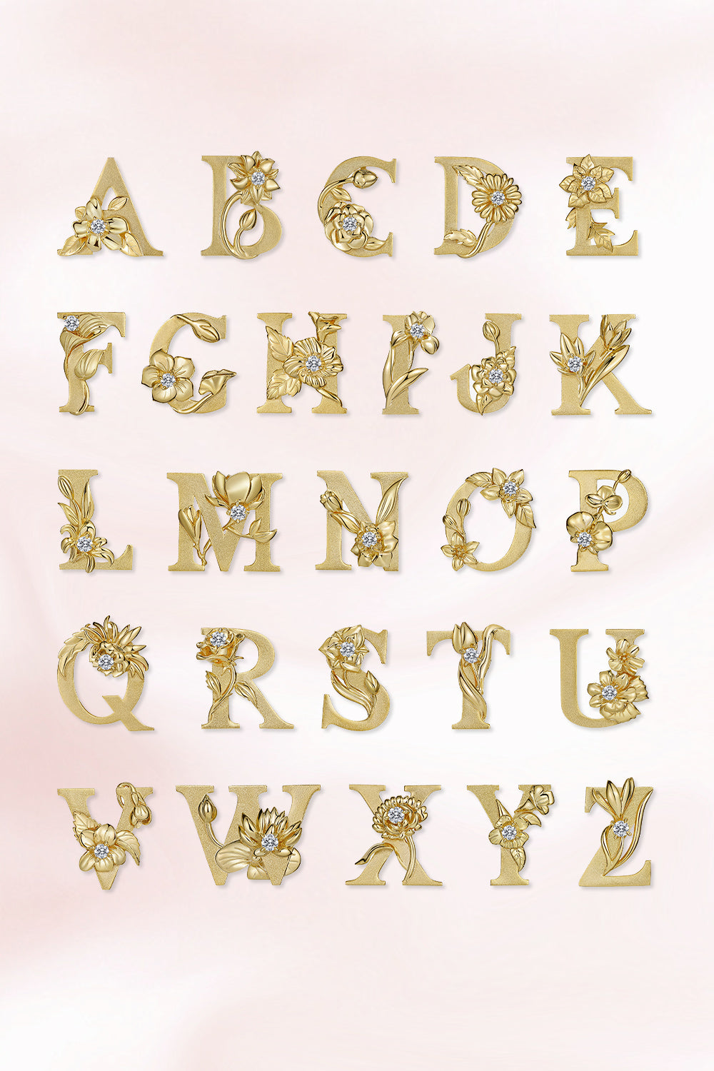 Through extraordinary attention to detail and a distinct aesthetic, the designer of the Flower Fables collection skillfully combined 26 distinct flower initials into a unicameral, distinctive design.