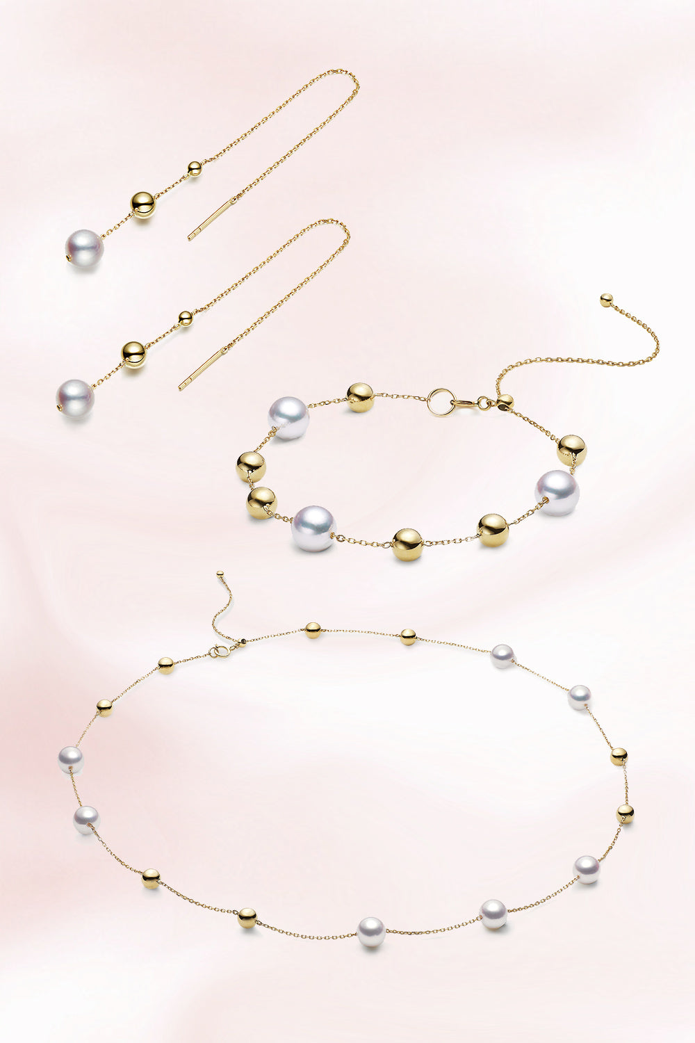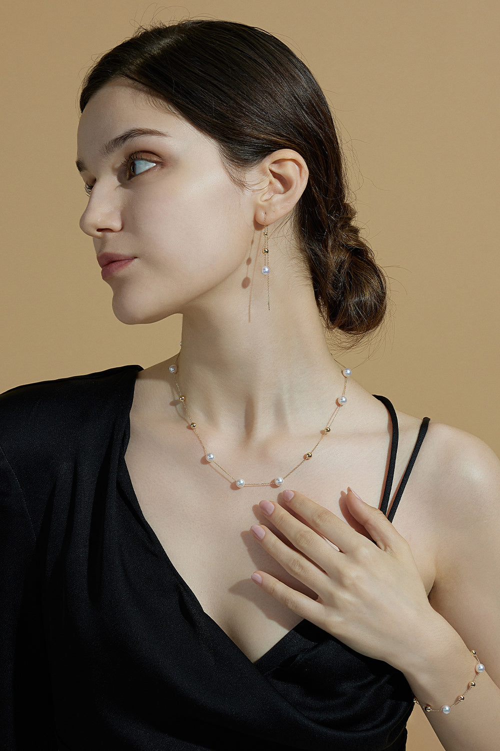 The Moonlight Collection can be adjusted in length so that they can be adapted to different styles according to the way you wear your make-up. Sometimes vintage and elegant, sometimes simple and generous. The softness of the pearls and the splendour of the gold beads reflect each other, just like your love, which is both gentle and firm - I certainly won't try to pick the moon, I want the moon to come to me.