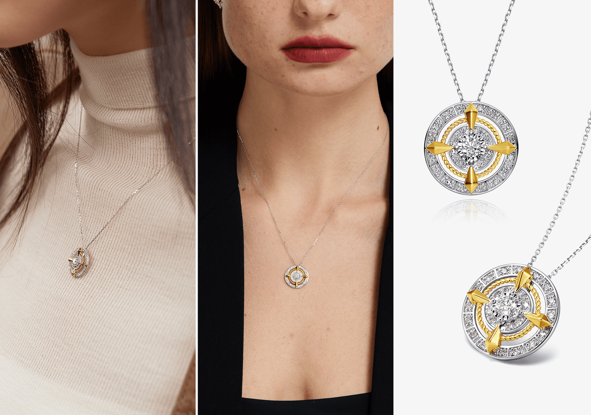 Life is an unknown voyage. We walk through fields of thorns and sail against endless waves, experiencing the ups and downs of life. In this journey, we find companions who always point the way for us, acting like the compass of our lives. They guide us to bravely explore the frontiers and realize our hearts’ passion. Zaiyou Jewelry celebrates these companions and this enduring journey with an assortment of vintage-styled earrings, pendants, and rings inspired by the compass that guide us through uncharted waters. The exquisite pieces from Lead Me On Collection of trendy and luxurious designer jewelry feature lab-grown diamonds and electroplated 14k yellow and white gold. The element of the compass is presented in an antique style with glorious gold and silver colors. The lustrous metal reflects diamond fire and safeguards your expedition. May the compass guide you to explore your potential and help you find your enthusiasm. This collection is perfect for those who love vintage-style jewelry and will also be a fantastic gift jewelry choice.