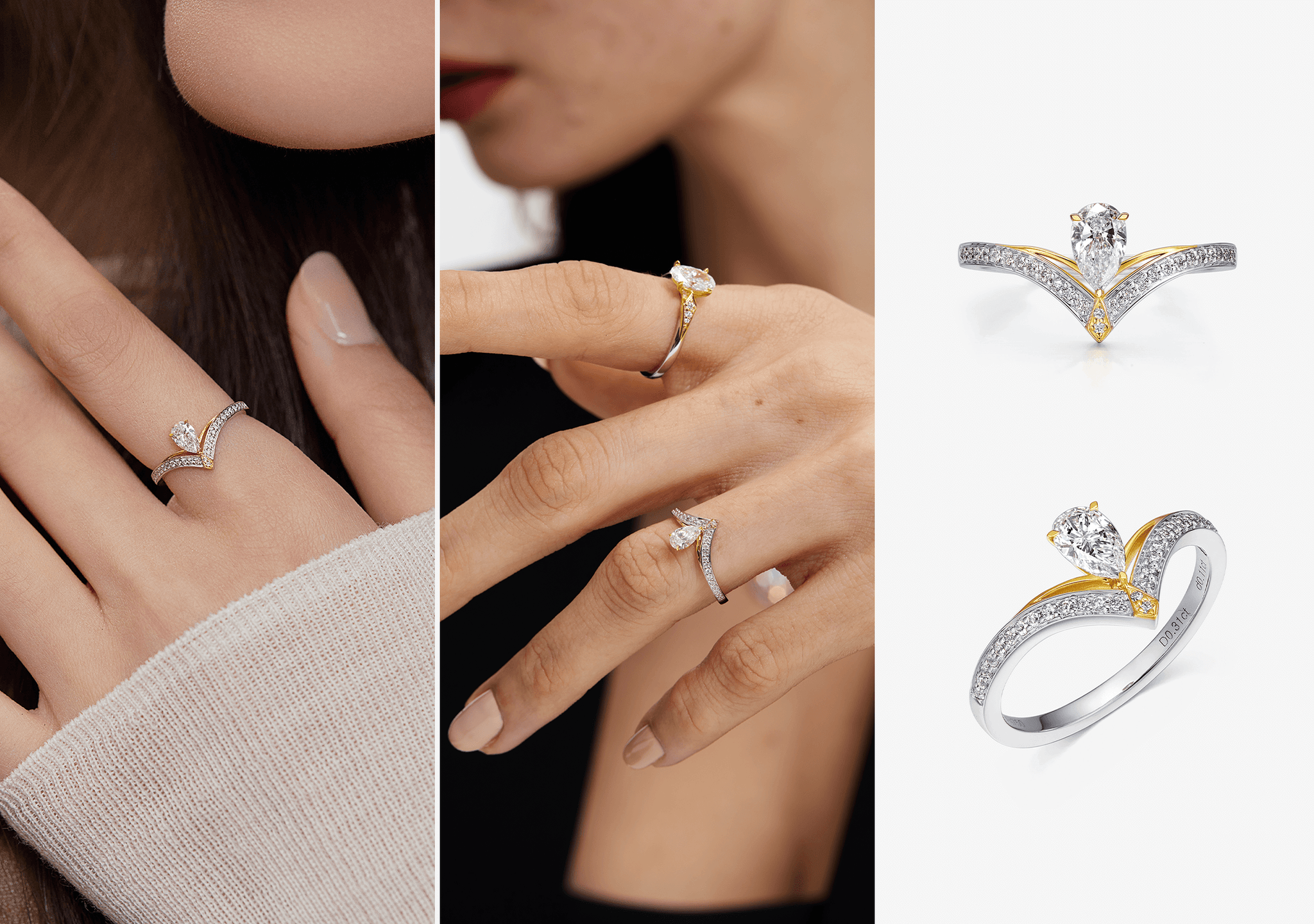The 0.3-carat princess-cut lab-grown diamond crowns a v-shaped ring band embellished by melee diamonds. Princess-cut diamonds have always been very popular. Its modern look with undeniable brilliance makes it stand out in fancy cuts. The clean outline of the princess-cut diamond in this Princess Cut Solitaire Ring fits the sharp curve of the ring band impeccably, adding a taste of modern fashion to your look. Stay bright and edgy like this ring in your future journey to come.