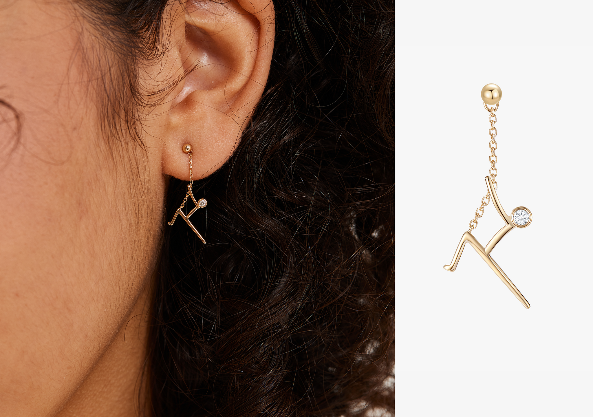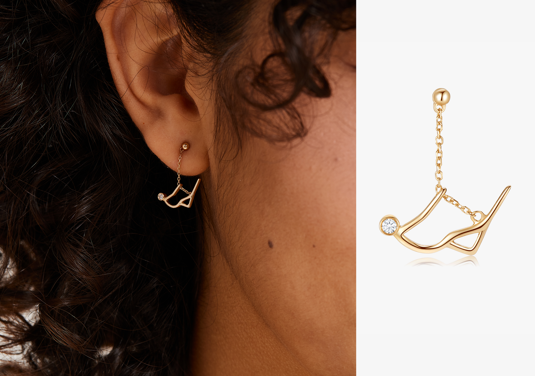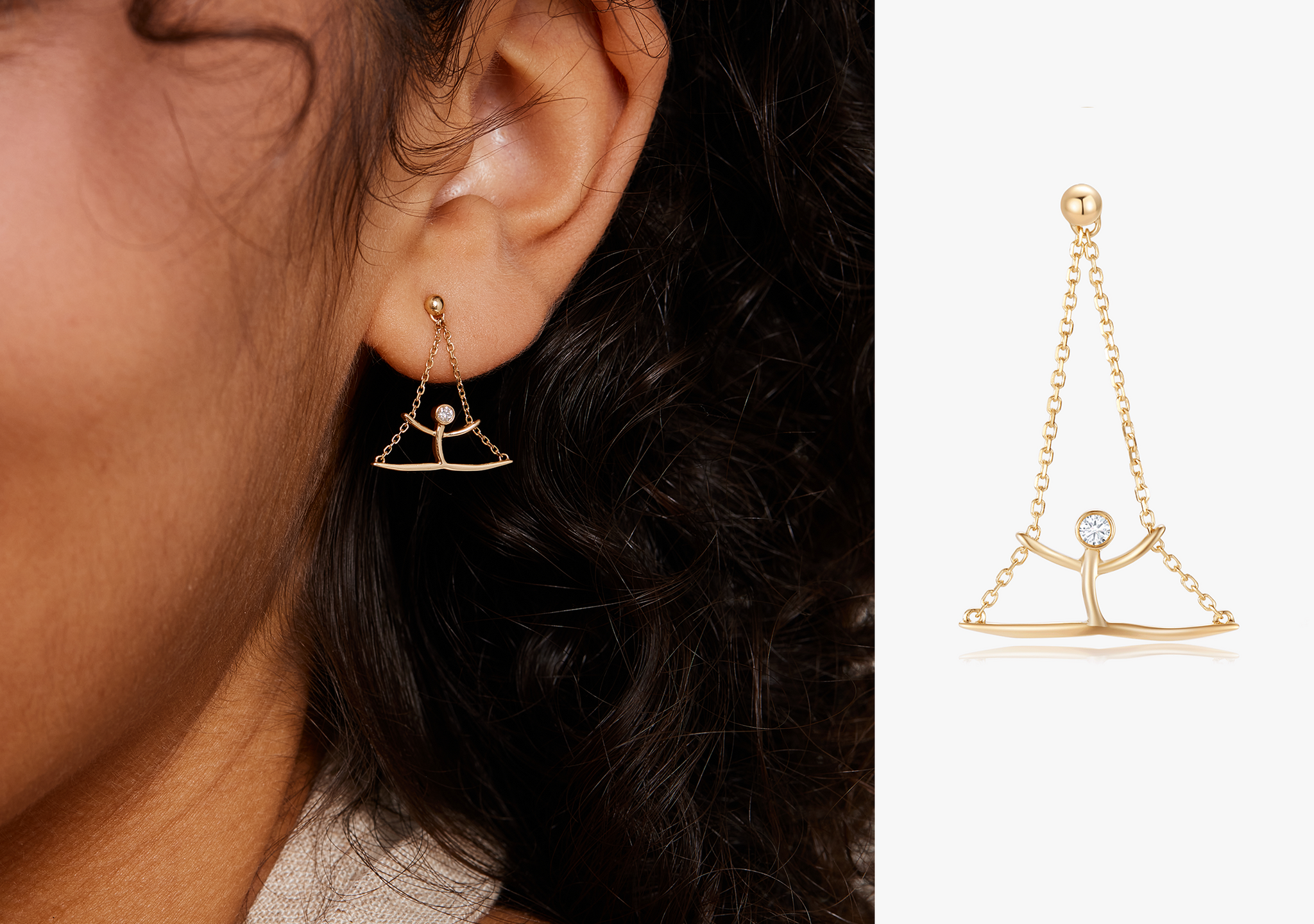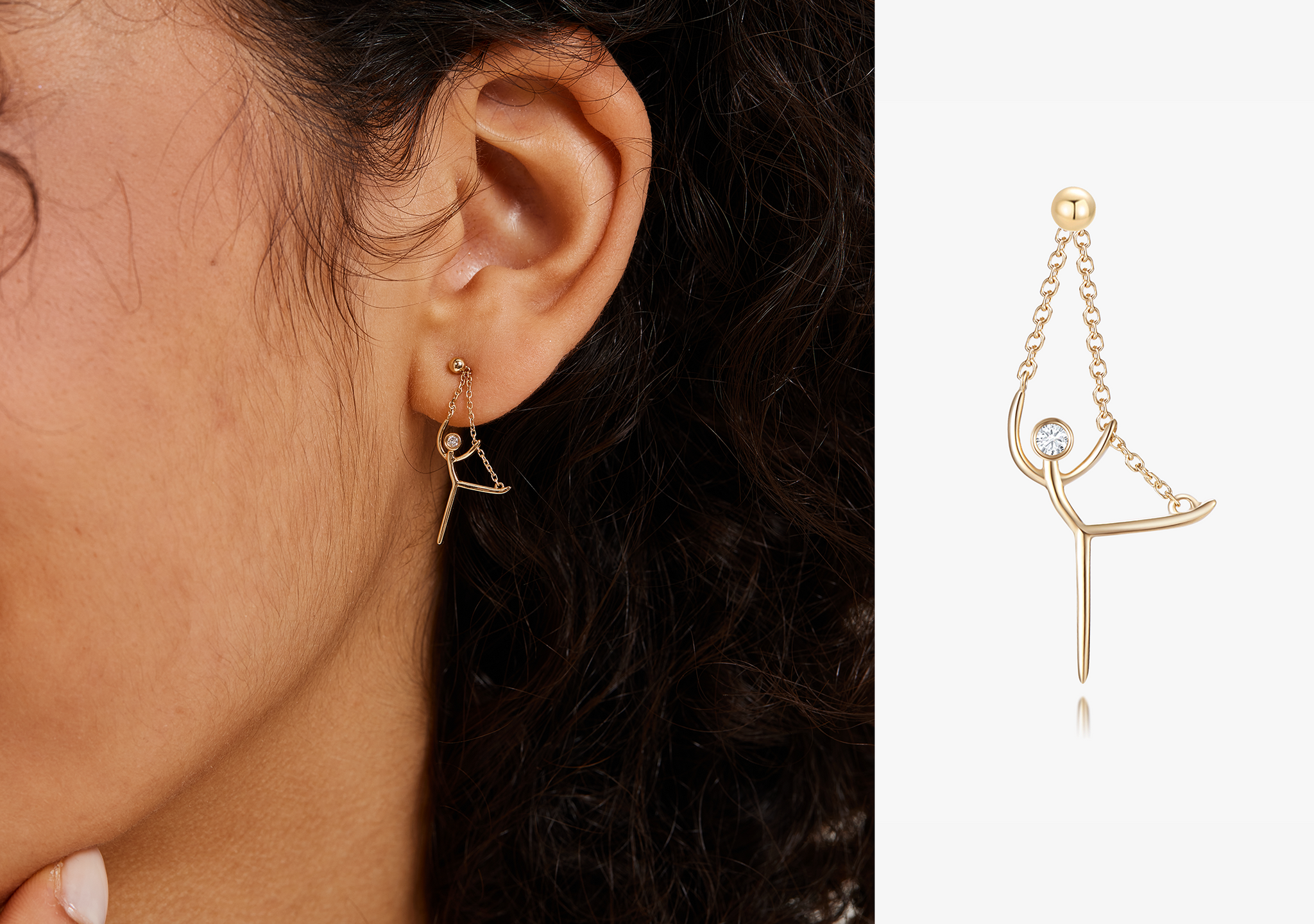 - Suspended Splits Pose Lab Diamond Single Drop Earring in Yellow Gold: This piece embodies the perfect harmony between flexibility and strength.