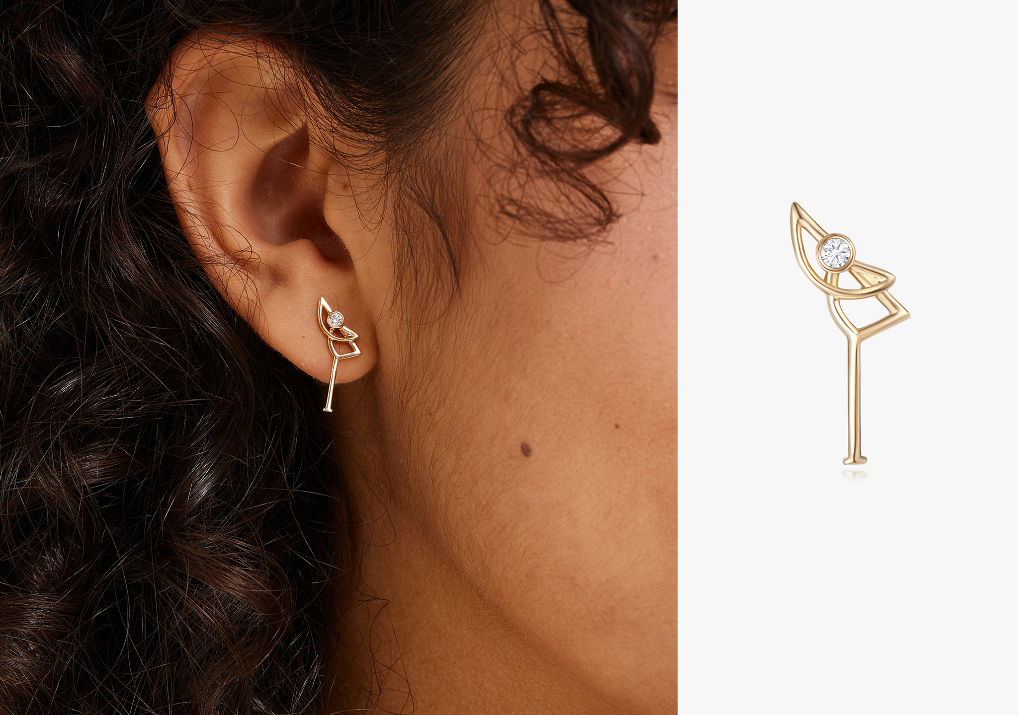 - Dancer's Pose Lab Diamond Single Stud Earring in Yellow Gold: Feel the joy and creativity that yoga brings similar to a dancer in motion.