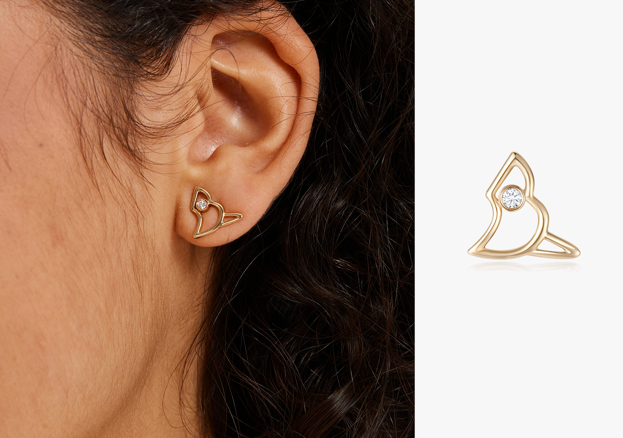 - Pigeon Pose Lab Diamond Single Stud Earring in Yellow Gold: Find serenity and release in the pigeon pose which captures elegance in this piece.