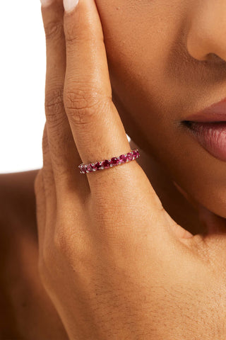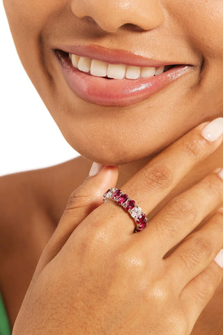 OVAL-CUT LAB-GROWN RUBY & DIAMOND VIBRANT ETERNITY RING IN 18K GOLD