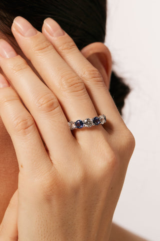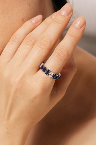 OVAL-CUT LAB-GROWN SAPPHIRE & DIAMOND VIBRANT ETERNITY RING IN 18K GOLD