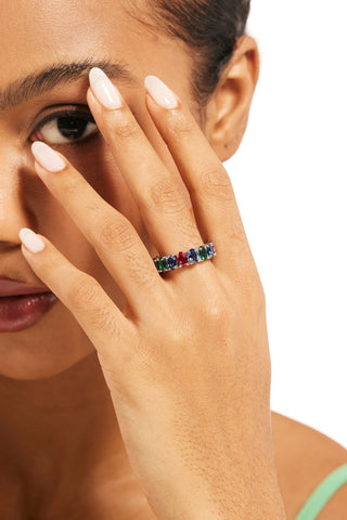 OVAL-CUT LAB-GROWN SAPPHIRE, EMERALD & RUBY VIBRANT ETERNITY RING IN 18K GOLD