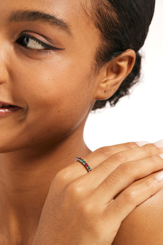 ROUND-CUT LAB-GROWN EMERALD & RUBY VIBRANT ETERNITY RING IN 18K GOLD