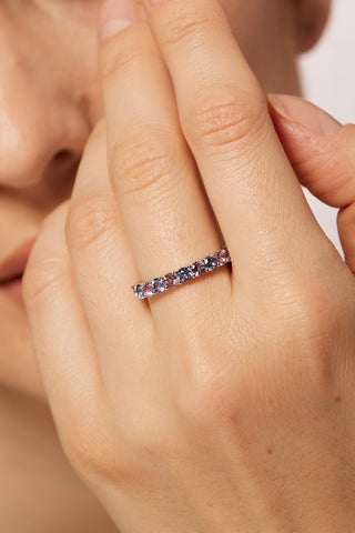 ROUND-CUT LAB-GROWN PINK & CORNFLOWER SAPPHIRE VIBRANT ETERNITY RING IN 18K GOLD