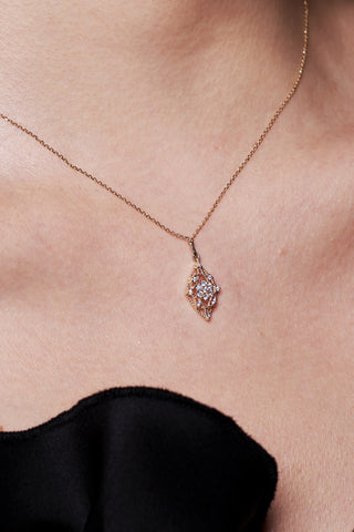 RHOMBUS-SHAPED GEOMETRY DREAM CATCHER VINTAGE BEADS LAB-GROWN DIAMOND PENDANT IN 9K YELLOW GOLD