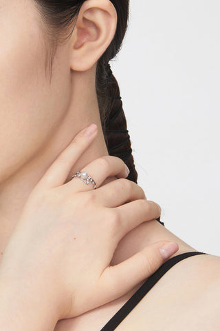 Lab Diamond and Akoya Pearl Double loops Ring in 14k Yellow/White Gold