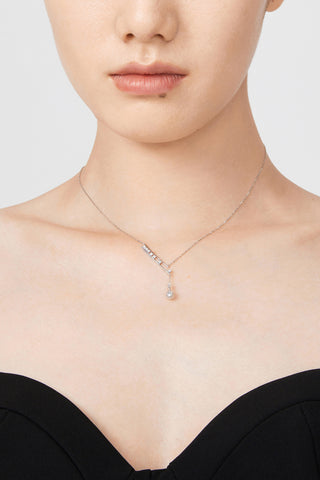 Lab Diamond and Akoya Pearl Drop Necklace in 14k Yellow/White Gold