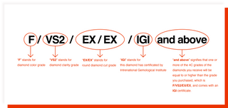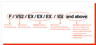 For example, you may receive a 1.05ct/F/VS1/EX/EX/EX diamond with an IGI certificate,